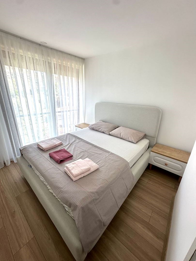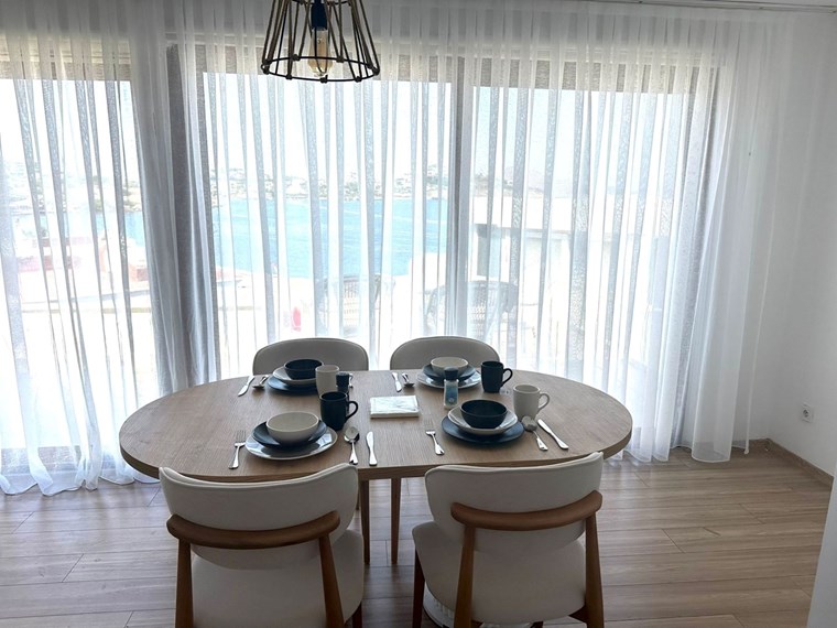 Located right on the beach, the apartment boasts sea views. It features two bedrooms (double bed),